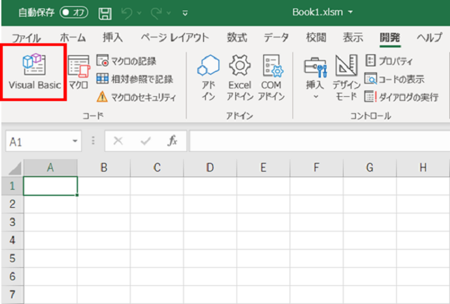 右上のボタンをクリックして「Visual Basic」を閉じます。